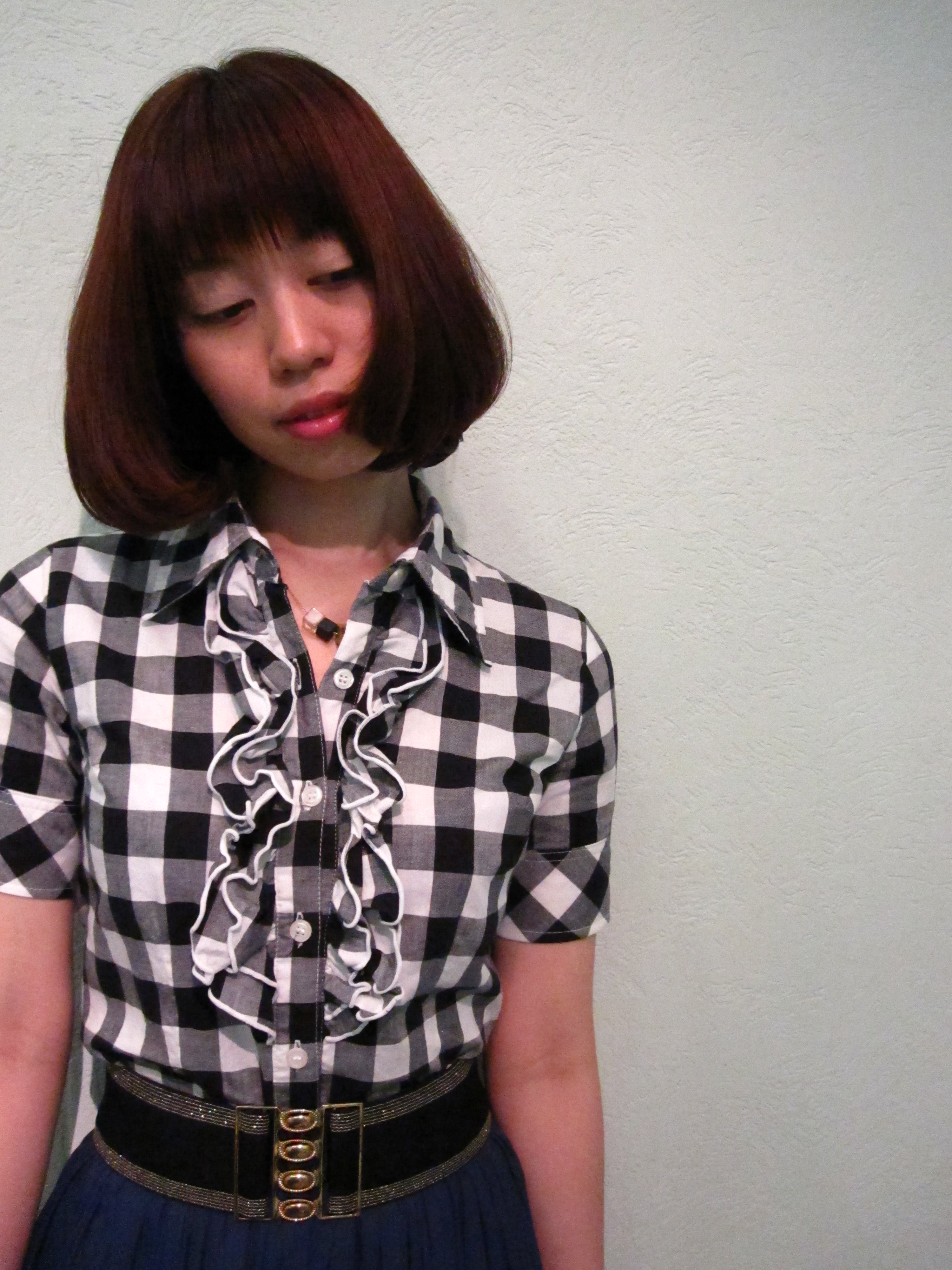 カットは、スタンダードな平行ラインのボブに、表面に少しだけ動きを出すためにレイヤーをプラスしましたグッド(上向き矢印)あまり軽くしないことでとても再現性に優れたスタイルですぴかぴか(新しい)